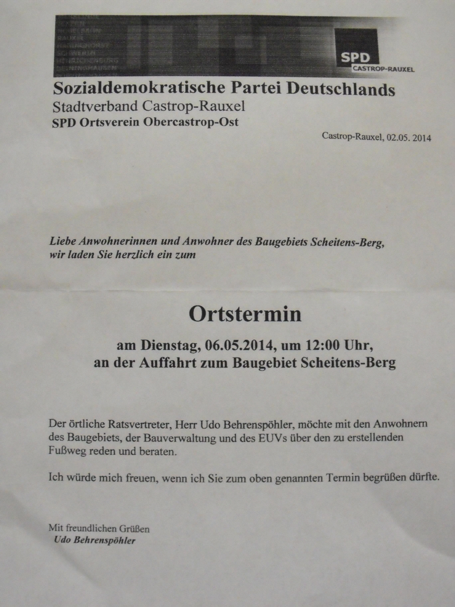 Schreiben des Ratsvertreter Herr Udo Behrenspöhler |